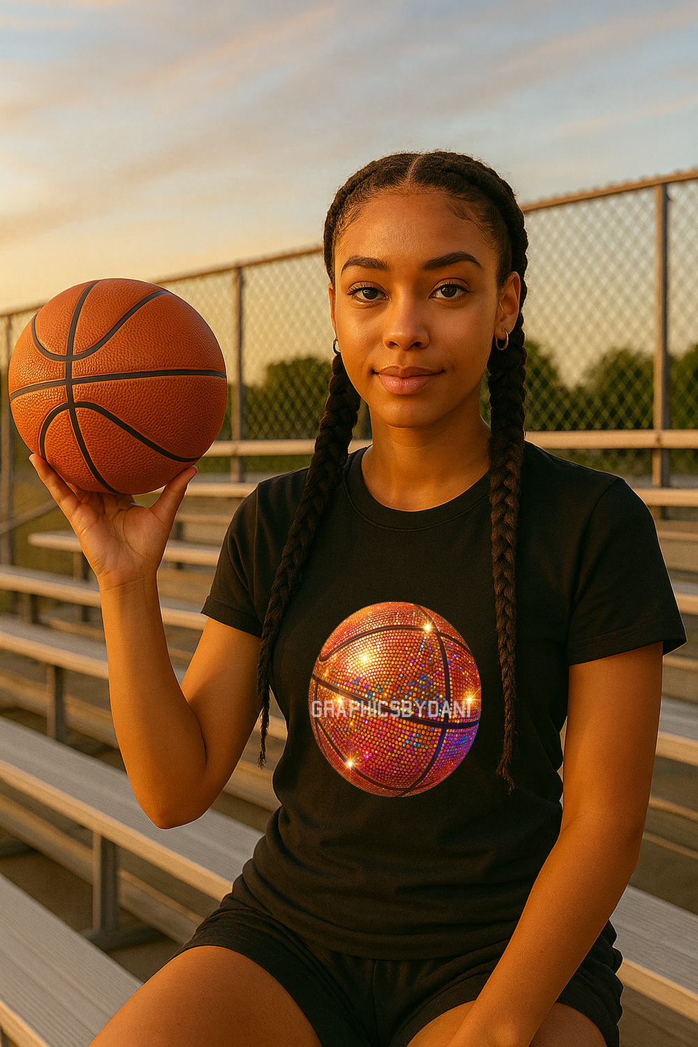 Bring your designs to life with this bold and eye-catching Rhinestone Basketball PNG! 💎 This digital design features a glossy, vibrant basketball covered in shimmering rhinestones with warm copper, rose gold, and orange tones that sparkle beautifully. Perfect for creating standout DTF transfers, sublimation shirts, and sports-themed apparel, this high-quality file is crafted to make your projects shine.